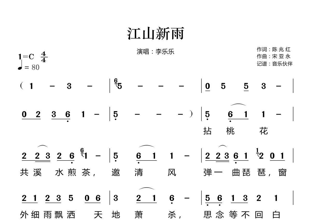 江山新雨简谱 - 李乐乐演唱