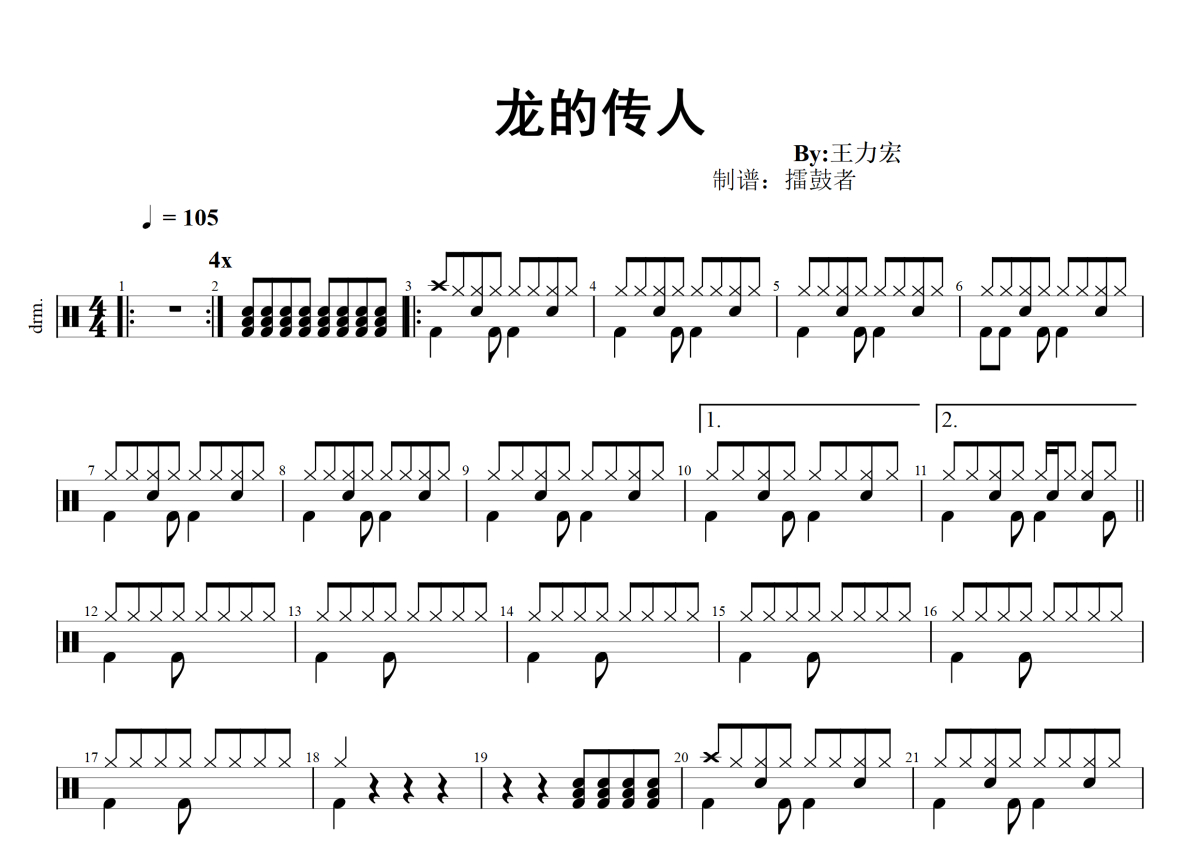 《龙的传人》架子鼓谱 - 王力宏