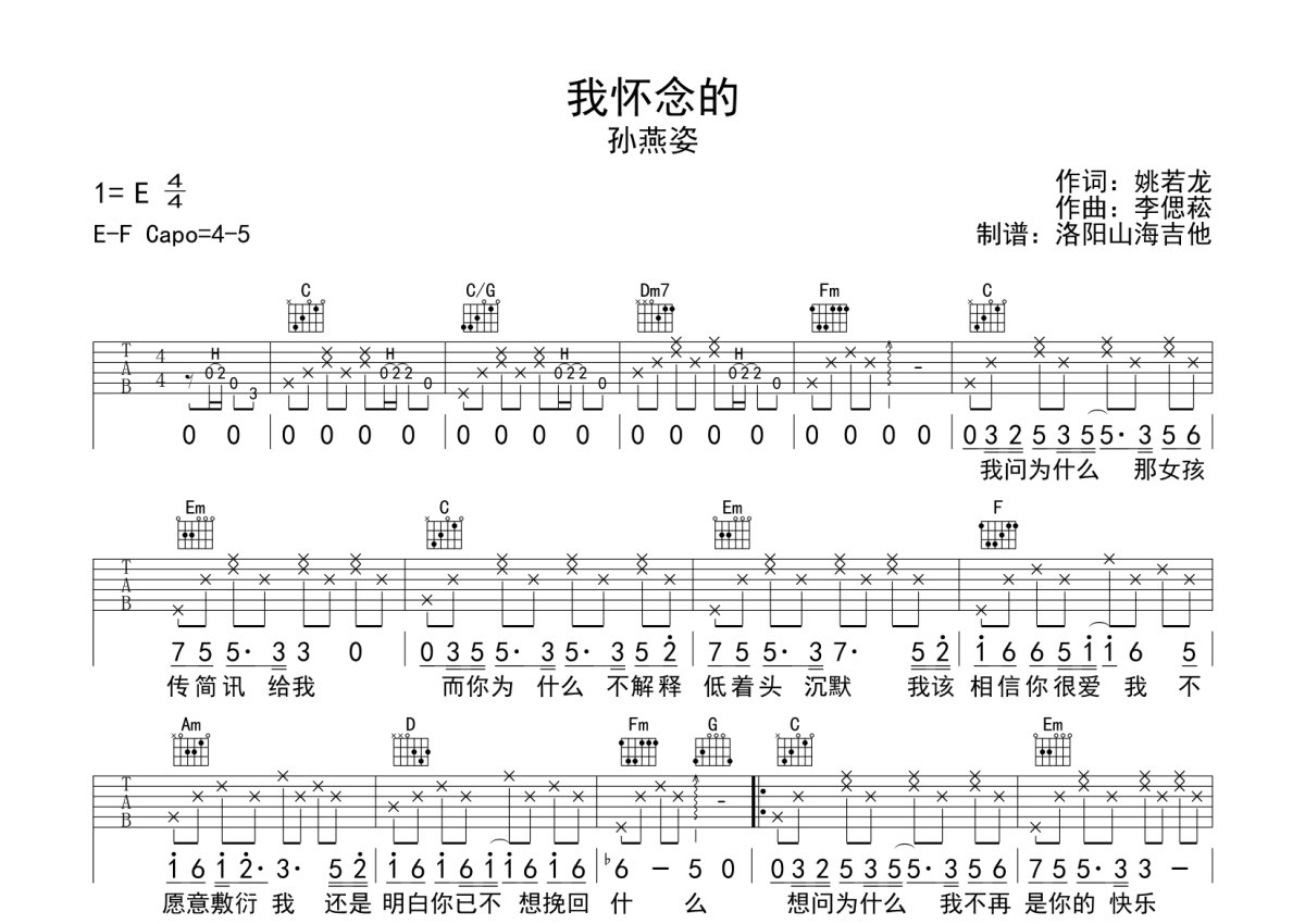 洛阳山海吉他,全网资深制谱师。吉他谱专栏持续更新!三年更新九百余首,质量保证!