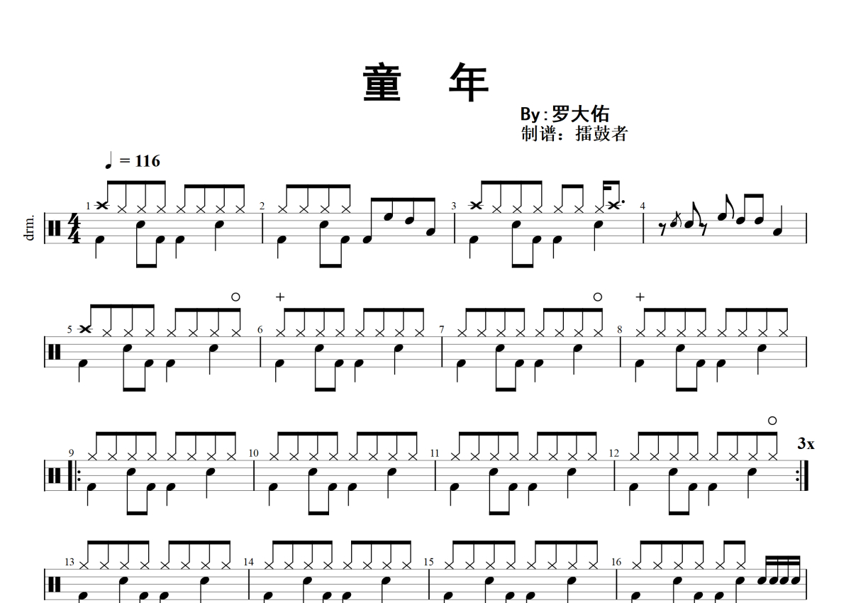童年架子鼓谱 - 罗大佑演唱