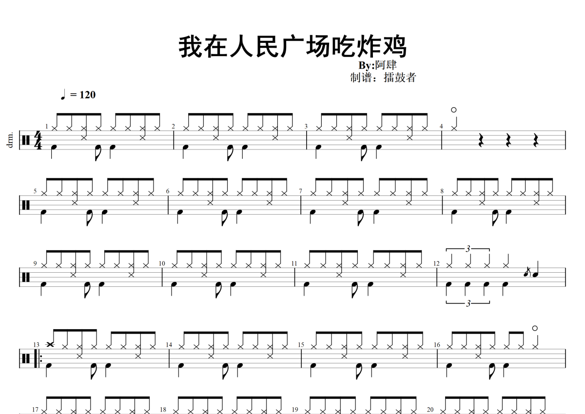 阿肆《我在人民广场吃炸鸡》架子鼓谱