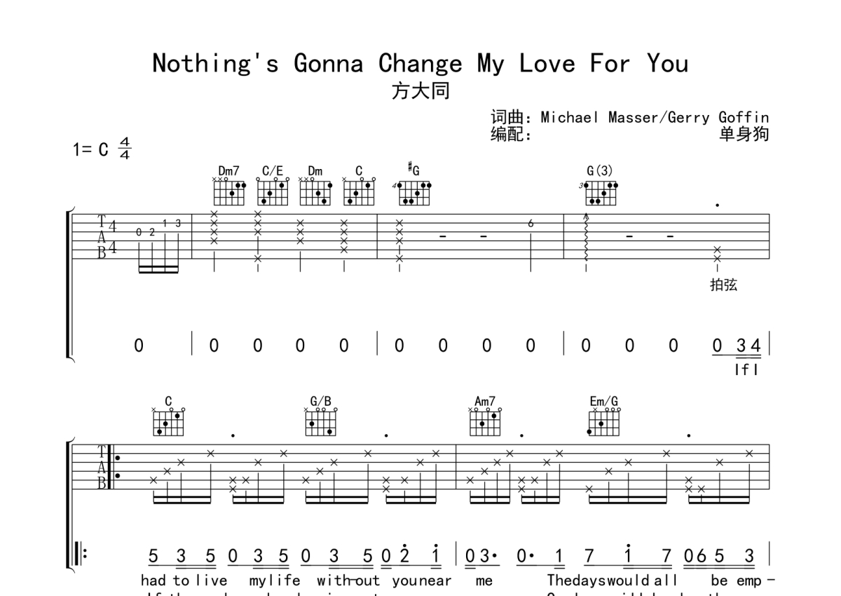 方大同《Nothing's Gonna Change My Love For You》吉他谱 - C调弹唱六线谱