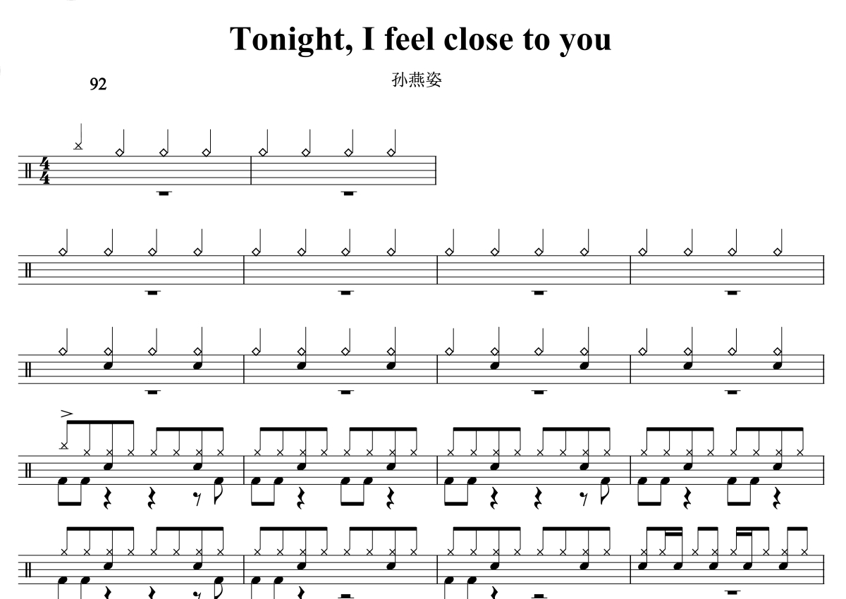 孫燕姿《Tonight I feel close to you》架子鼓谱