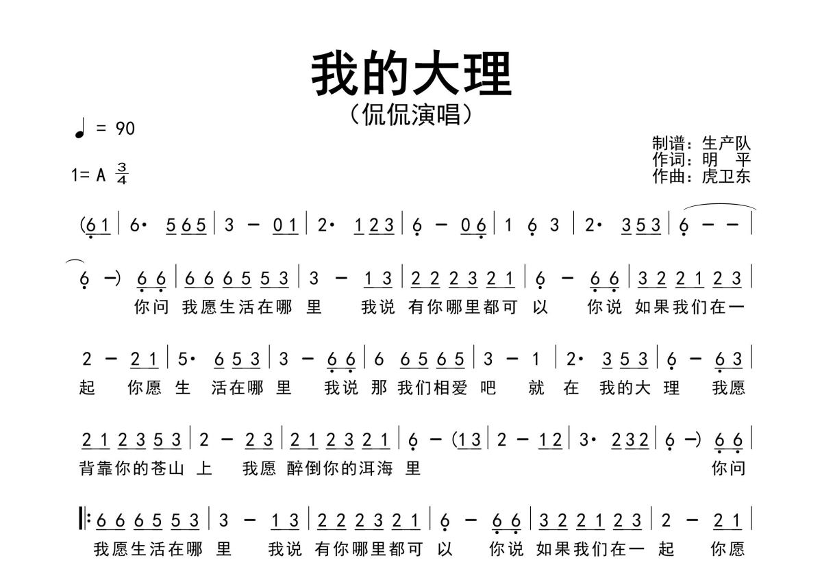 《我的大理》是侃侃演唱的一首歌曲,原版简谱,拍号为3/4拍,歌曲速度为每分钟90拍,这份简谱共有一张高清图谱,图谱由 @生产队 编配上传侃侃演唱的歌曲《我的大理》原版简谱,精准的前奏、间奏、尾奏solo编配。