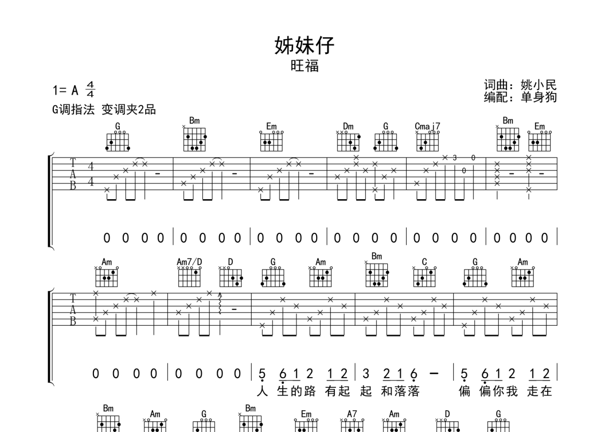 旺福《姊妹仔》吉他谱 - G调弹唱六线谱