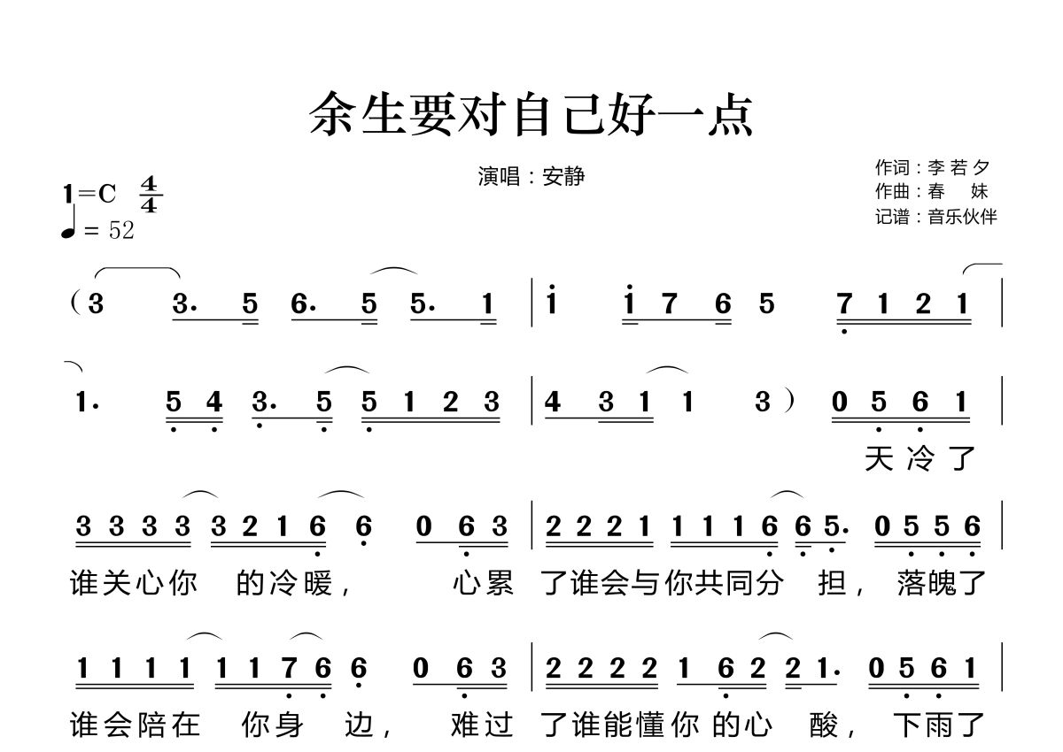 余生要对自己好一点简谱 - 安静演唱