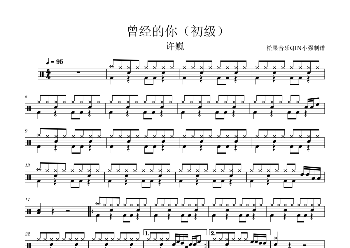 许巍《曾经的你(初级)》架子鼓谱