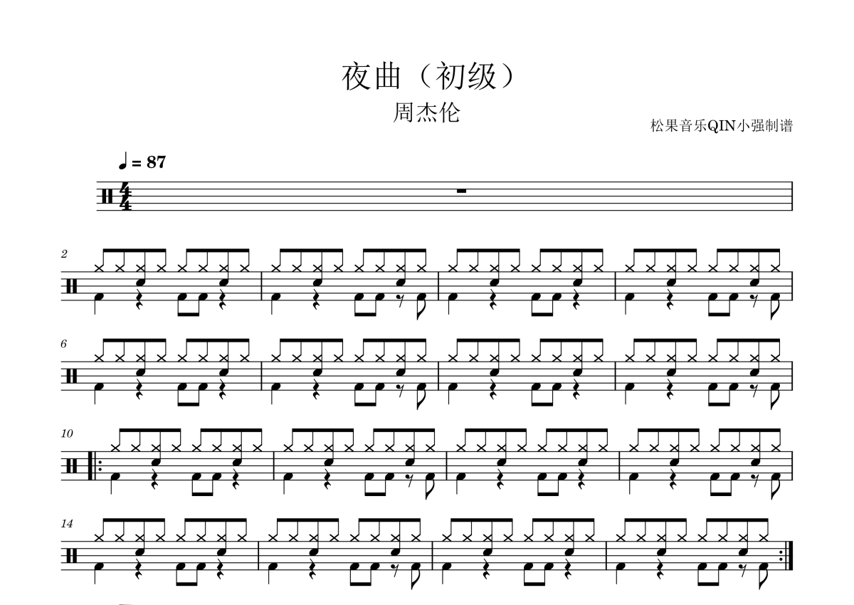 周杰伦《夜曲(初级)》架子鼓谱