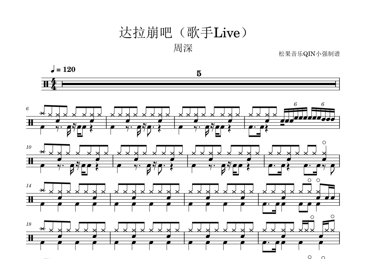 《达拉崩吧(歌手Live)》是歌手Live演唱的一首歌曲,这份架子鼓谱共有三张高清图谱,图谱由 @松果音乐QIN小强 编配上传,图谱使用五线谱编配,使用这份达拉崩吧(歌手Live)架子鼓谱,你将能够轻松地敲打出这首歌手Live的达拉崩吧(歌手Live),快来尝试吧。《达拉崩吧》是由音乐人ilem作词并作曲,虚拟歌姬洛天依、言和共同演绎的VOCALOID歌曲。该作品于2017年3月25日由ilem投稿至哔哩哔哩弹幕网,随后由ARE乐默凡华以单曲形式正式发布周深在《歌手·当打之年》节目中翻唱了《达拉崩吧》,再次将这首歌曲推向了大众视野,并成功占据了各大媒体平台的热搜榜。