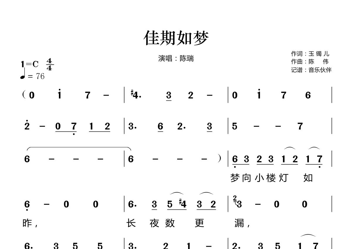 佳期如梦简谱 - 陈瑞演唱