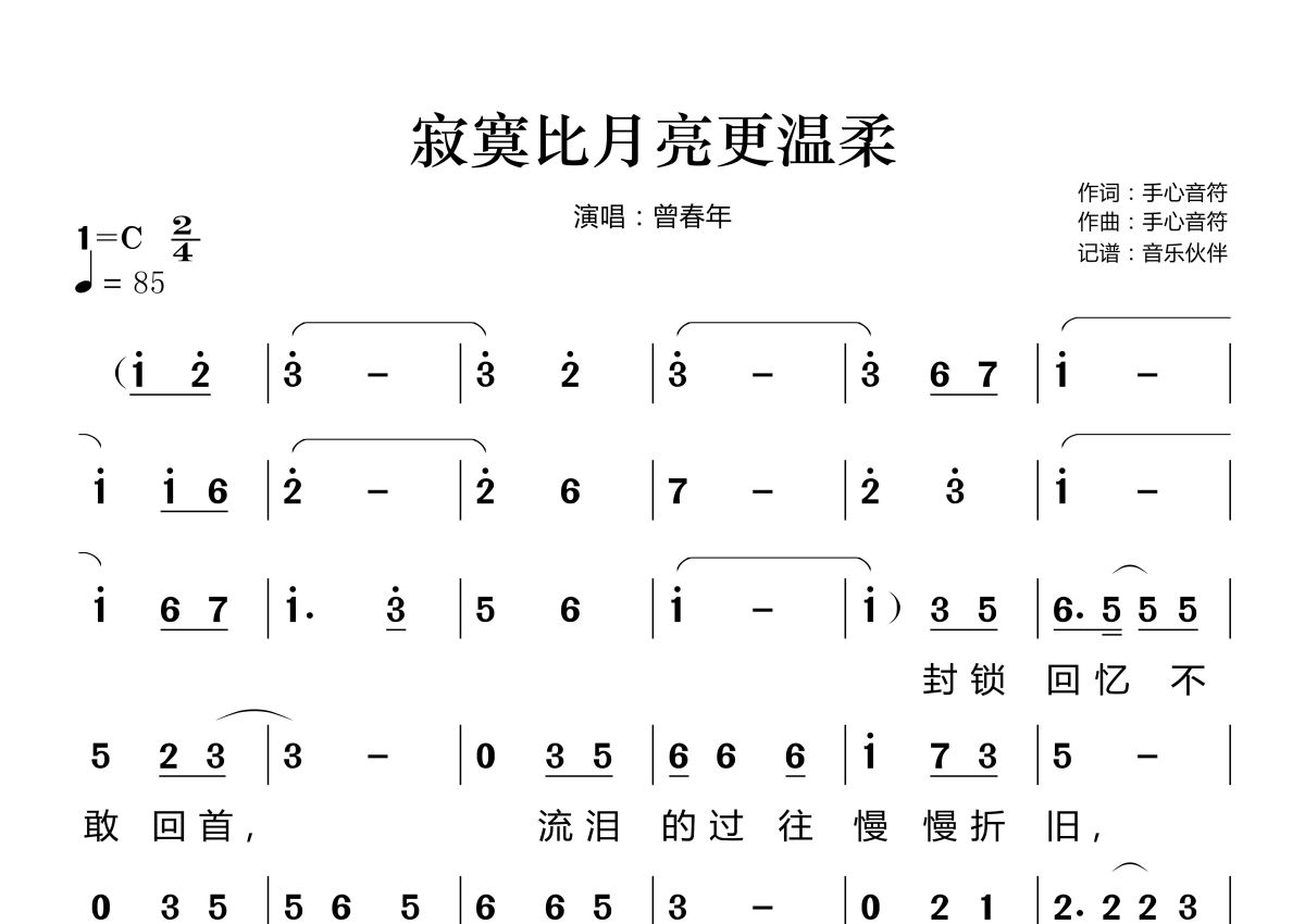 寂寞比月亮更温柔简谱 - 曾春年演唱