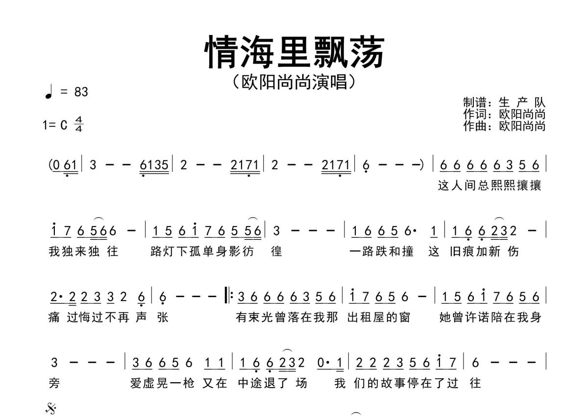 欧阳尚尚《情海里飘荡》简谱 - 原版简谱
