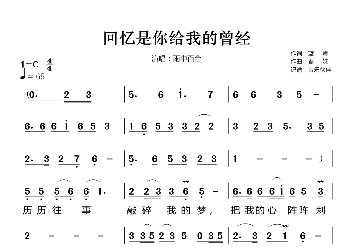 回忆是你给我的曾经简谱 - 雨中百合演唱