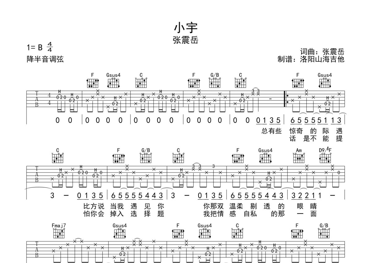 洛阳山海吉他,全网资深制谱师。吉他谱专栏持续更新!三年更新九百余首,质量保证!