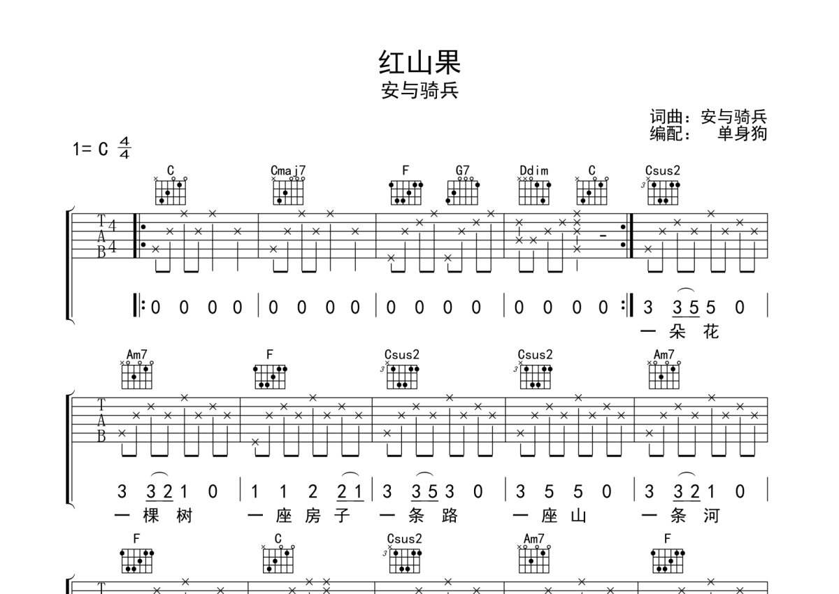 安与骑兵《红山果》吉他谱 - C调弹唱六线谱