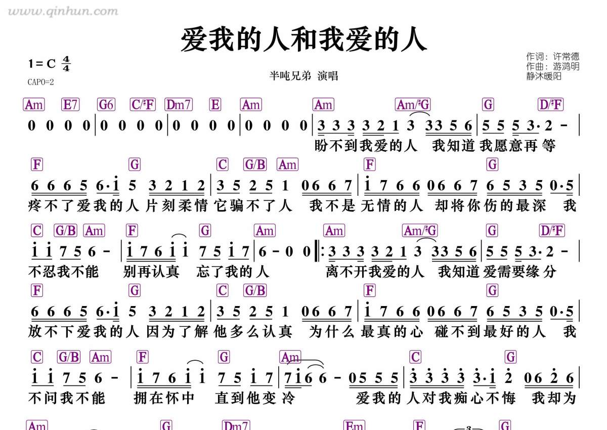《爱我的人和我爱的人》是半吨兄弟演唱的一首歌曲,和弦谱,拍号为4/4拍,这份简谱共有一张高清图谱,图谱由 @静沐暖阳 编配上传。
