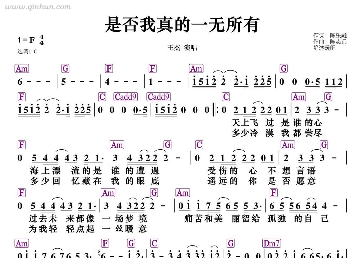 王杰《是否我真的一无所有》简谱 - 和弦谱