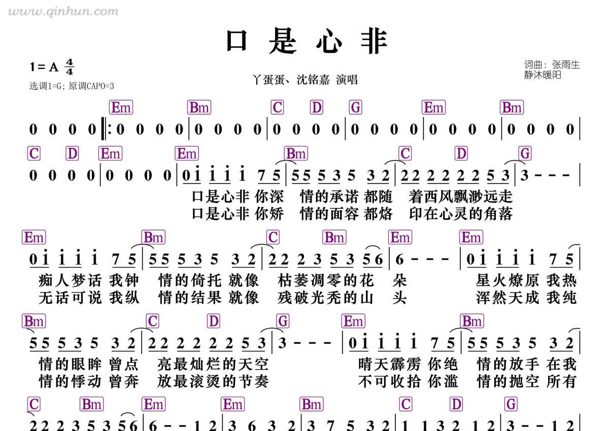 丫蛋蛋、沈铭嘉《口是心非》简谱 - 和弦谱
