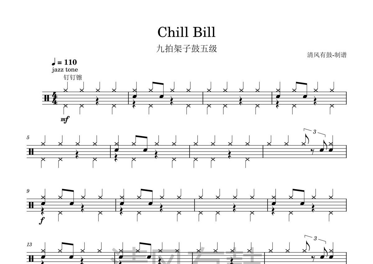 九拍-五级-《Chill Bill》架子鼓谱