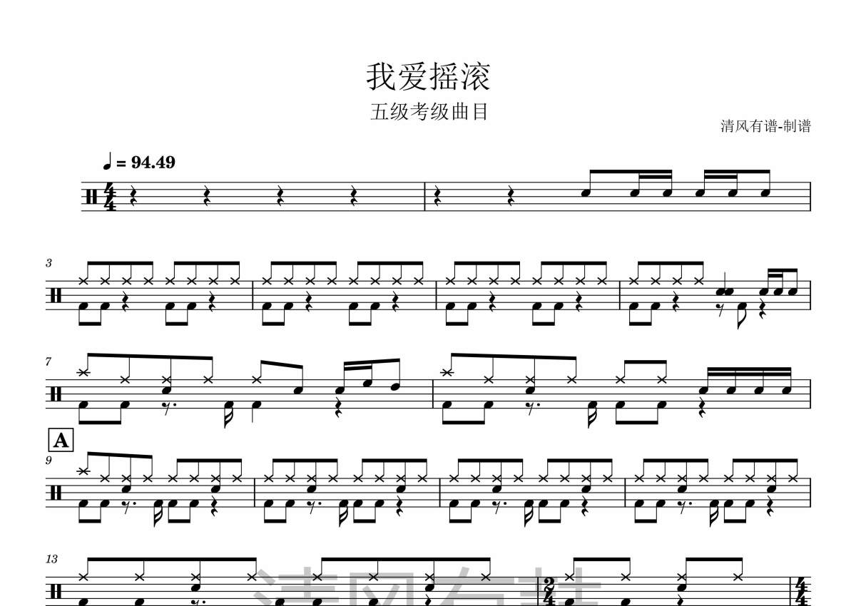 九拍-五级《我爱摇滚》架子鼓谱
