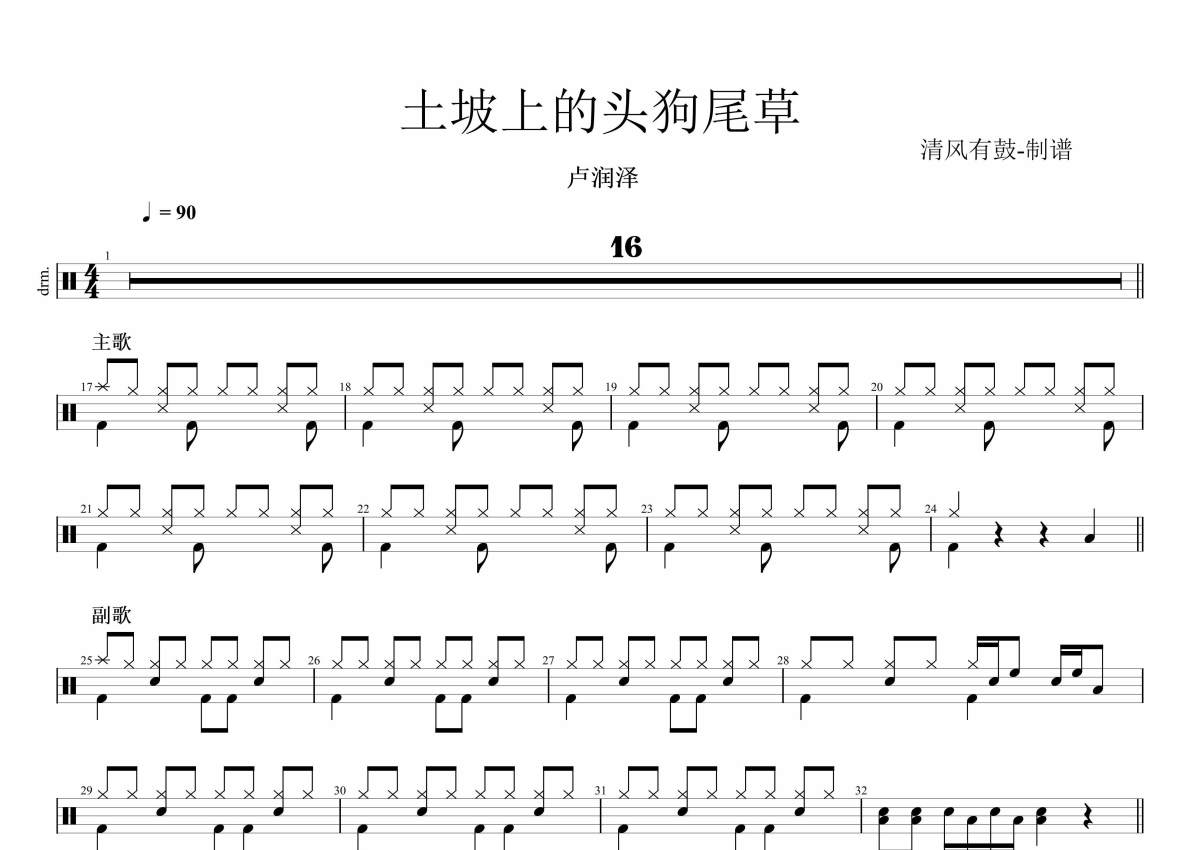 土坡上的狗尾草架子鼓谱 - 卢润泽清风有鼓编配