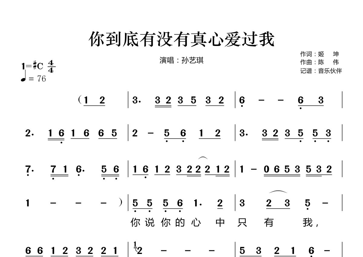 你到底有没有真心爱过我简谱 - 孙艺琪演唱