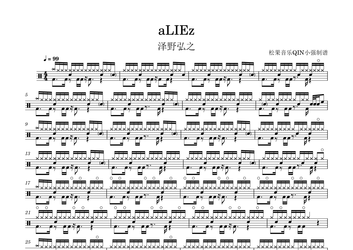 泽野弘之《aLIEz》架子鼓谱