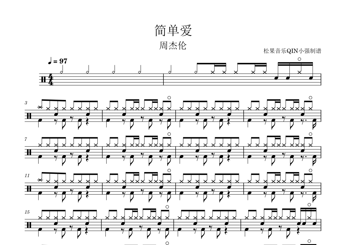 简单爱架子鼓谱 - 周杰伦松果音乐QIN小强编配