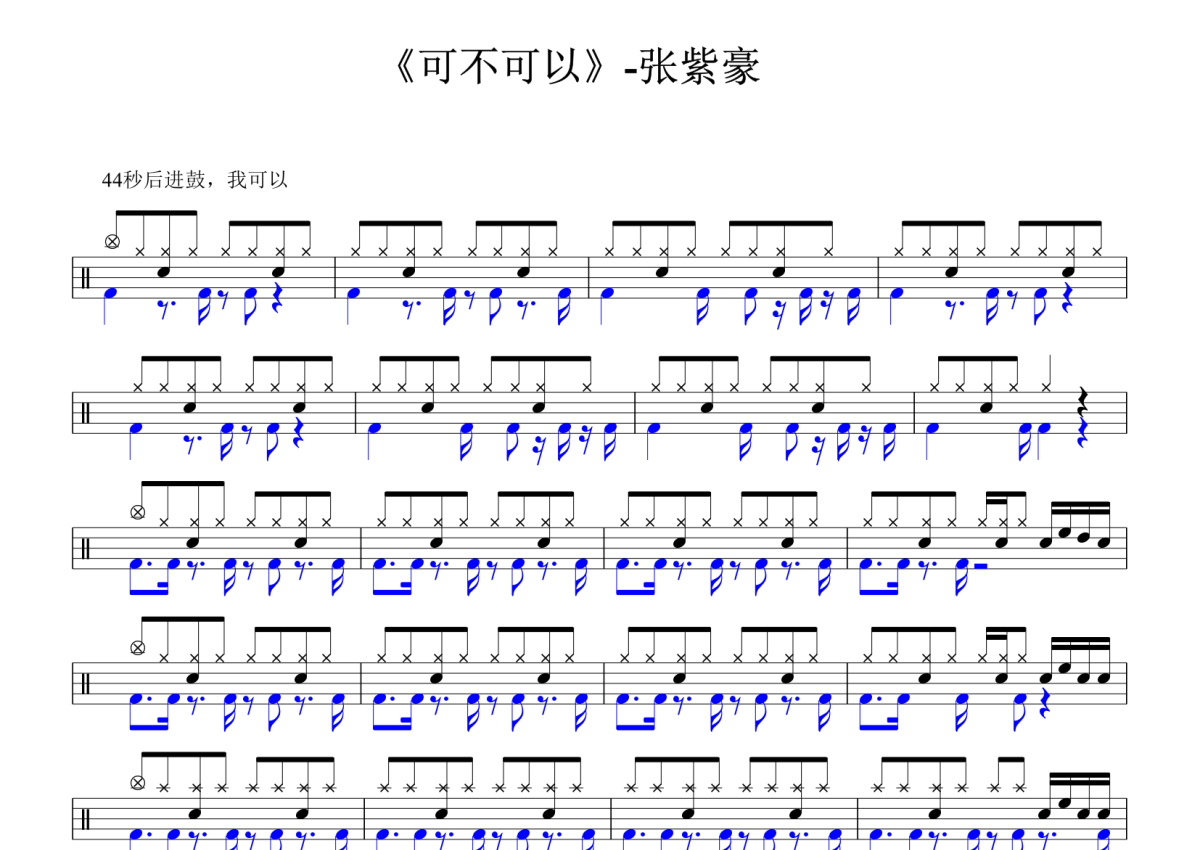 《可不可以》是张紫豪演唱的一首歌曲,拍号为4/4拍,歌曲速度为每分钟67拍,这份架子鼓谱共有两张高清图谱,图谱由 @音符喷血者 编配上传,图谱使用五线谱编配,使用这份可不可以架子鼓谱,你将能够轻松地敲打出这首张紫豪的可不可以,快来尝试吧。