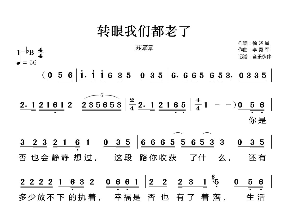 转眼我们都老了简谱 - 苏谭谭演唱