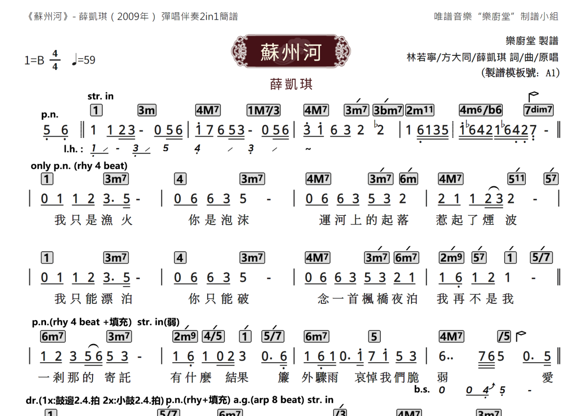 苏州河乐队总谱 - 薛凯琪演唱