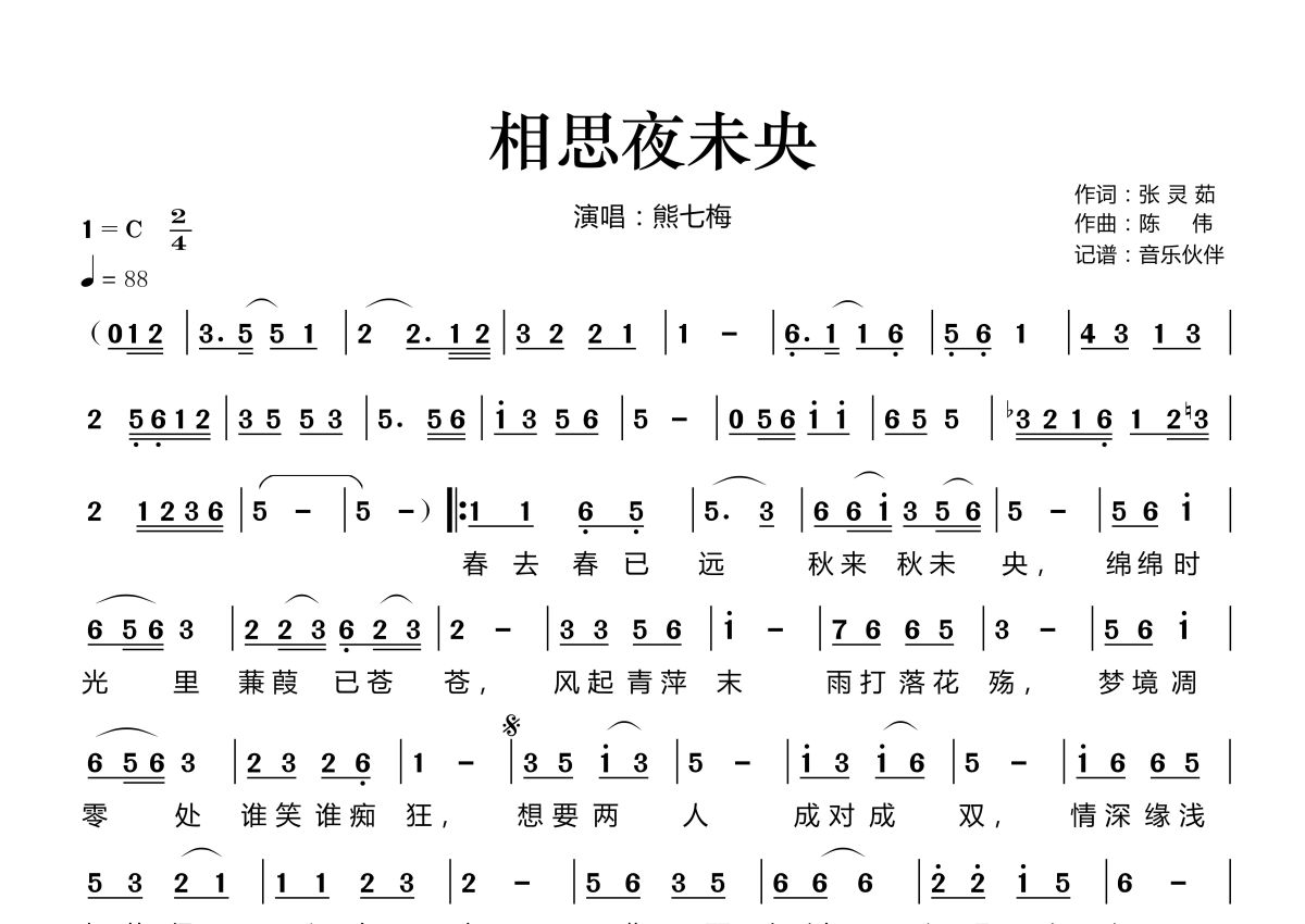 《相思夜未央》是熊七梅演唱的一首歌曲,这份简谱共有一张高清图谱,图谱由 @音乐伙伴 编配上传。
