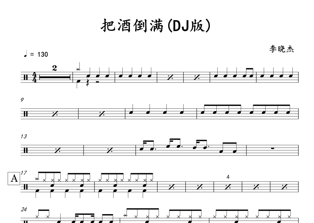 李晓杰《把酒倒满(DJ版)》架子鼓谱