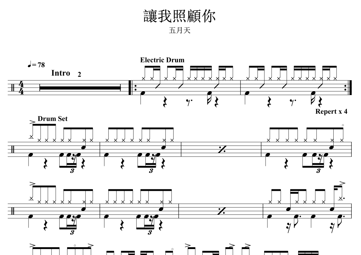 五月天《让我照顾你》架子鼓谱