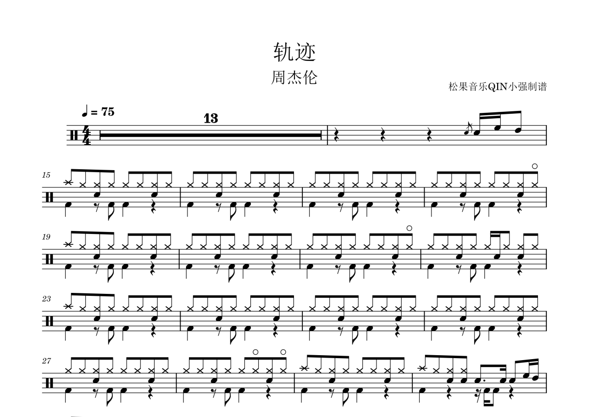 《轨迹》架子鼓谱 - 周杰伦