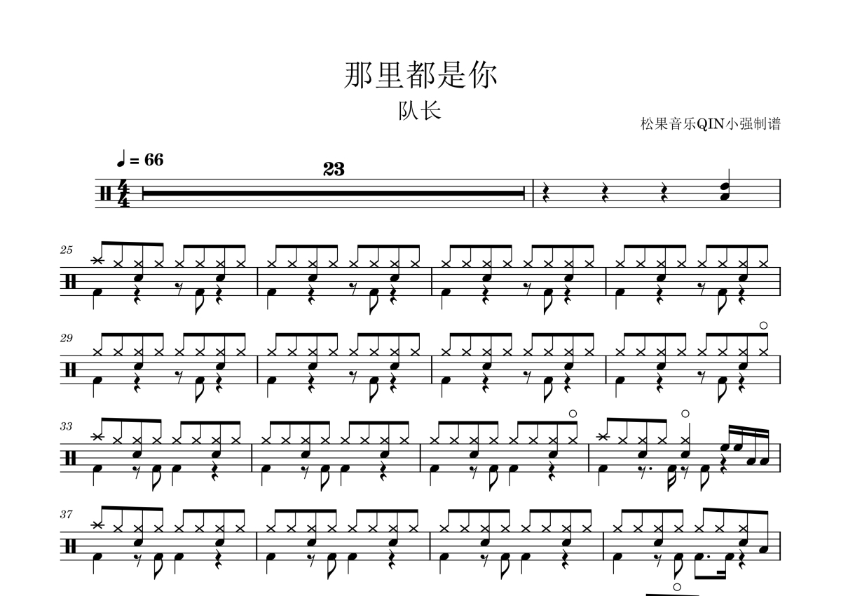 《哪里都是你》是队长演唱的一首歌曲,拍号为4/4拍,这份架子鼓谱共有一张高清图谱,图谱由 @松果音乐QIN小强 编配上传,图谱使用五线谱编配,使用这份哪里都是你架子鼓谱,你将能够轻松地敲打出这首队长的哪里都是你,快来尝试吧。《哪里都是你》是由队长演唱的歌曲,由队长作词作曲,收录于2017年7月3日发行的同名专辑《哪里都是你》中。