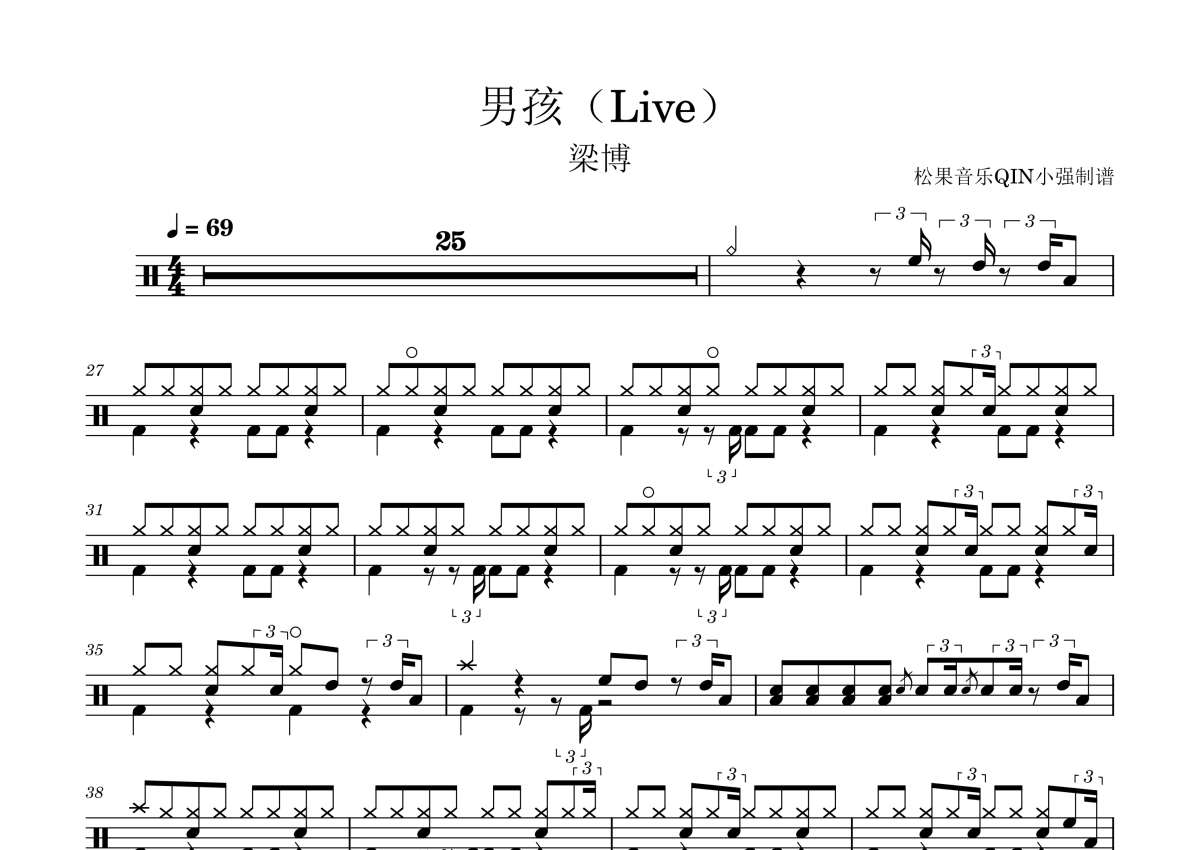 梁博《男孩(Live)》架子鼓谱