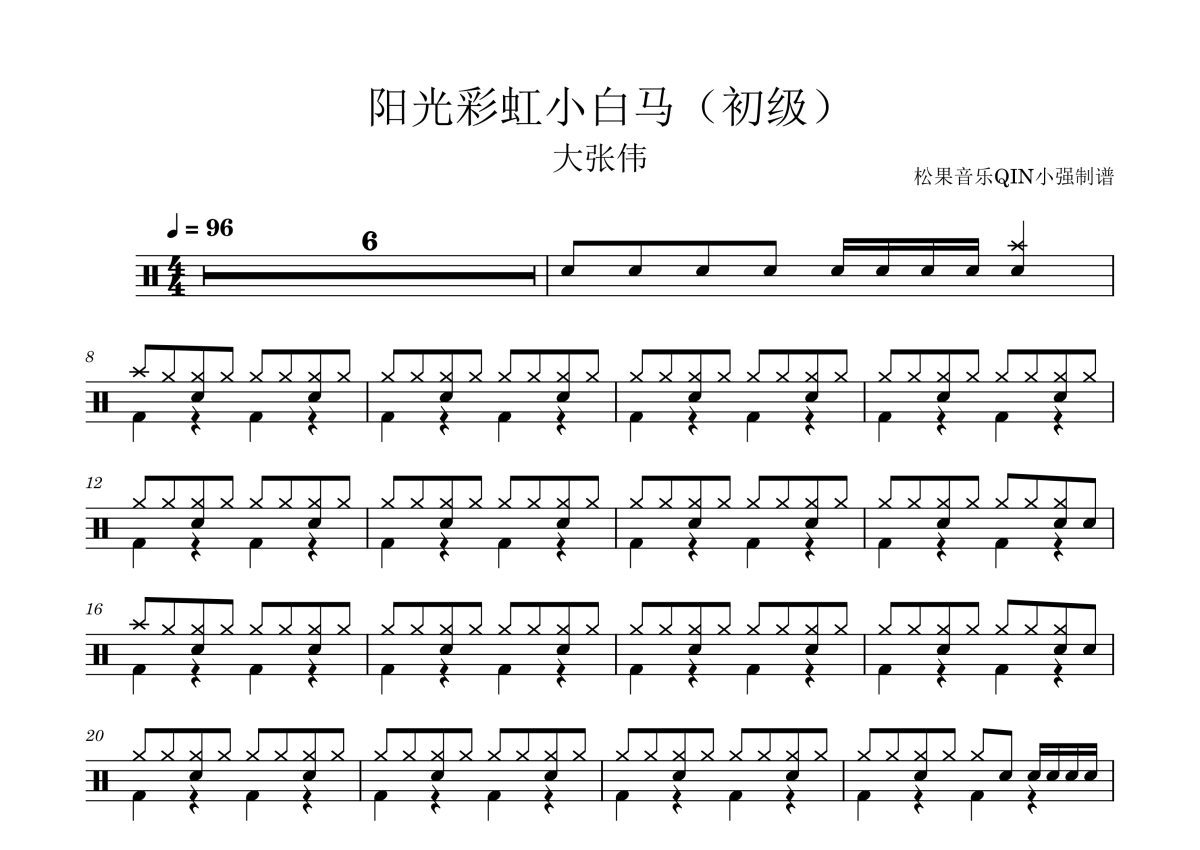 大张伟《阳光彩虹小白马(初级)》架子鼓谱