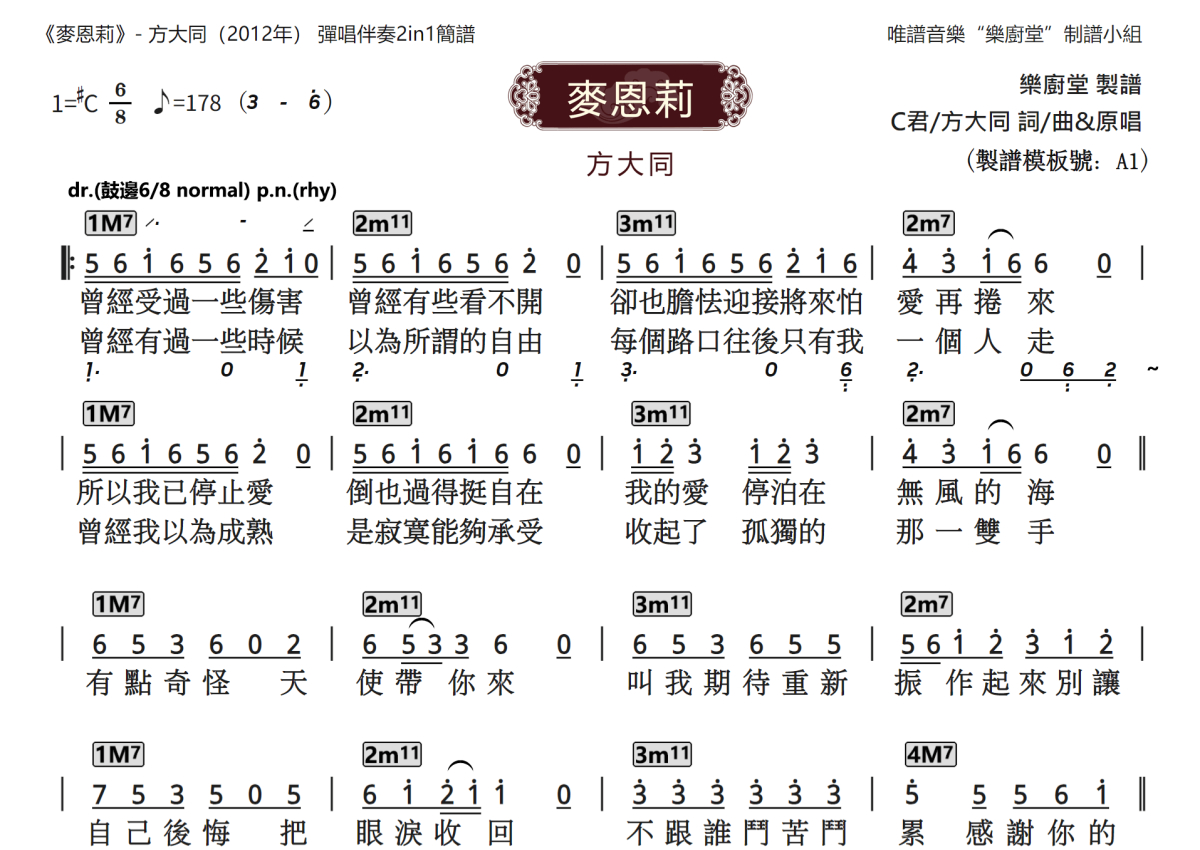 “乐厨堂”乐谱发布小组: 出版级乐谱扒谱制谱——以职业乐手圈通行标准记谱,遵循原版和声、伴奏元素和段落结构。 ❶ 2.0多功能专业团谱:采用台湾卓著公司开创的二代简谱标准制作。二代简谱无疑是迄今为止最科学、最易读的专业范畴多功能记谱方案:❷ 框架谱:采用职业乐手通常记谱方案制作。