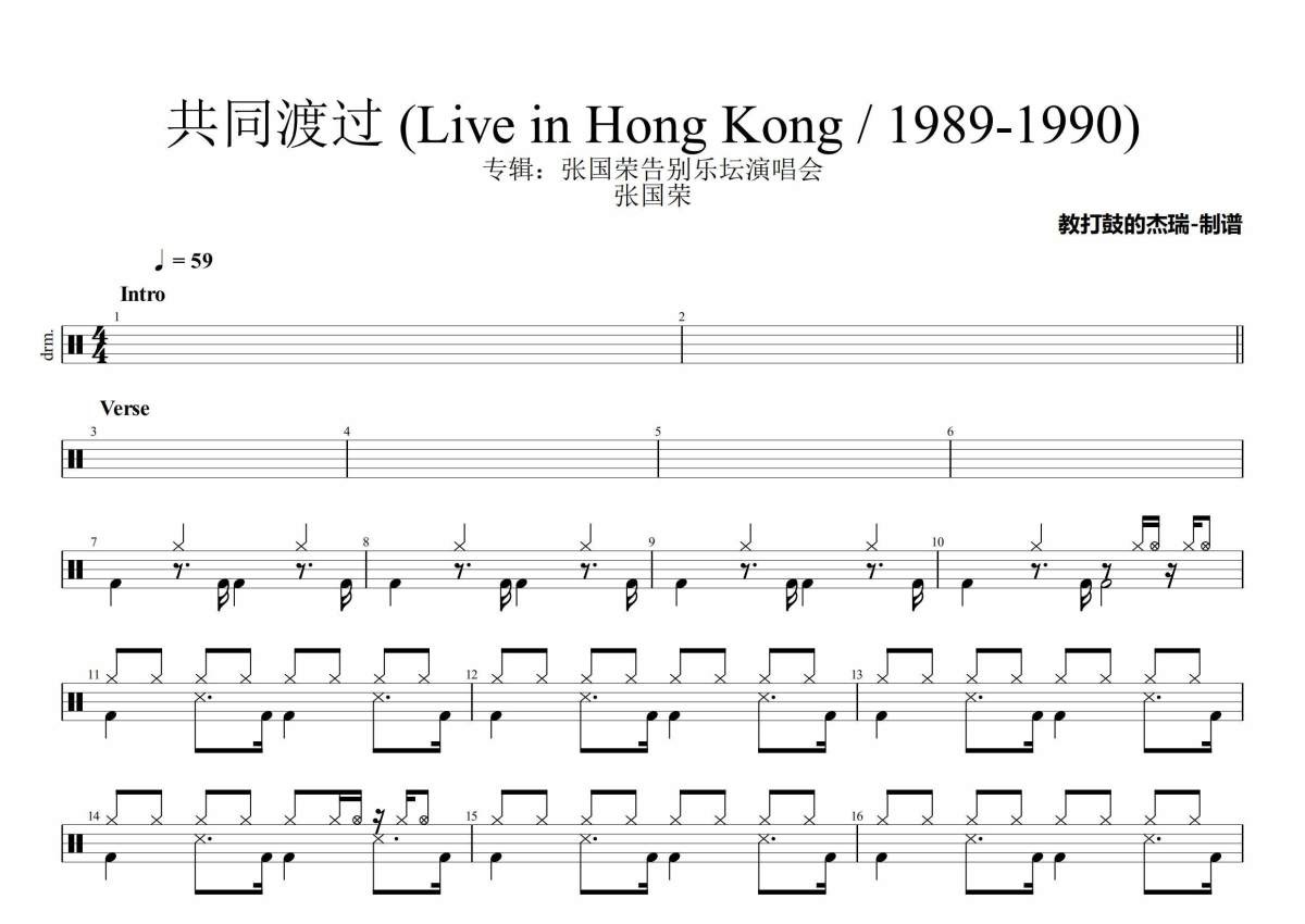 张国荣《共同渡过 (Live in Hong Kong / 1989-1990)》架子鼓谱 - 专辑:张国荣告别乐坛演唱会