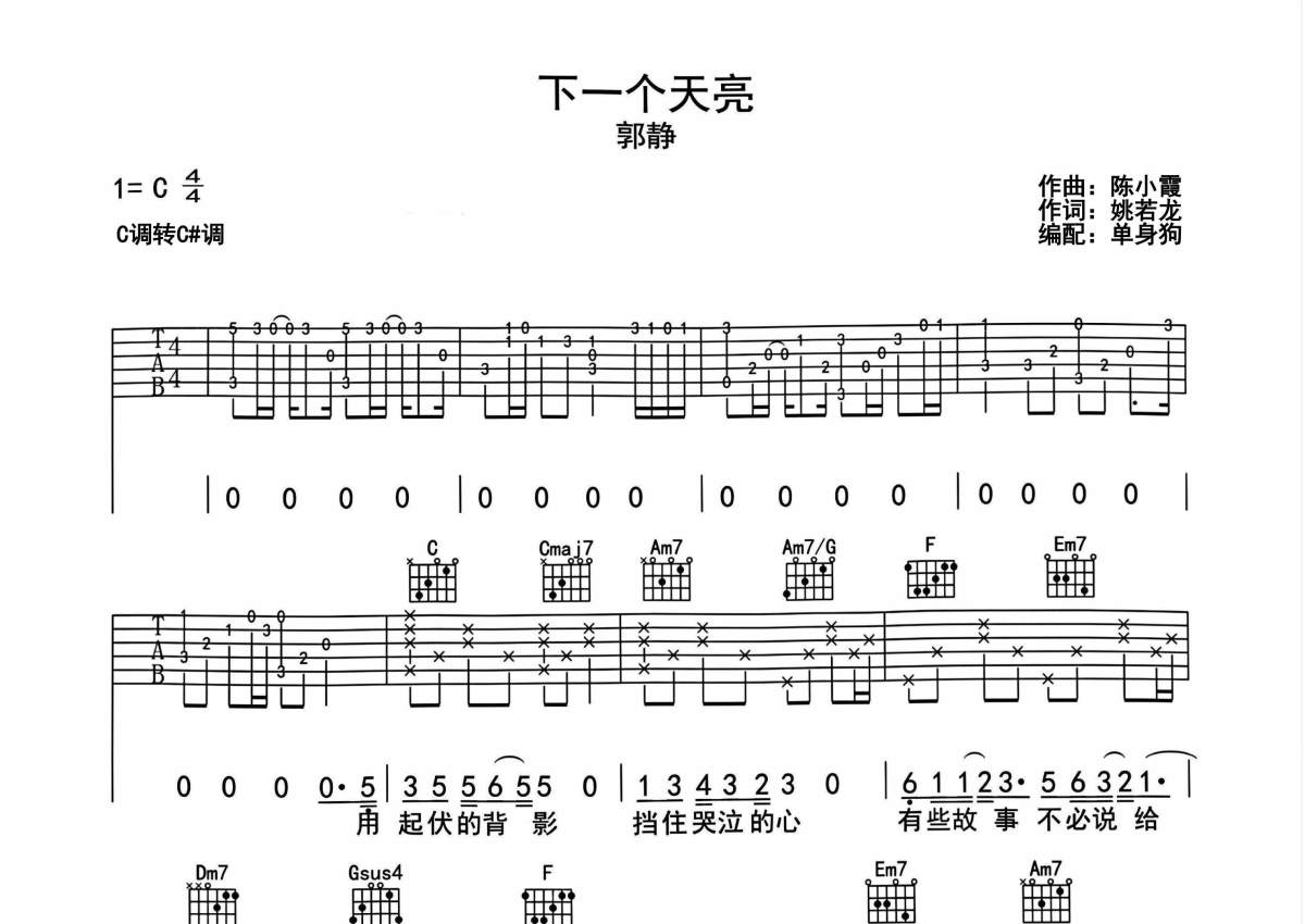 郭静《下一个天亮》吉他谱 - C调弹唱六线谱