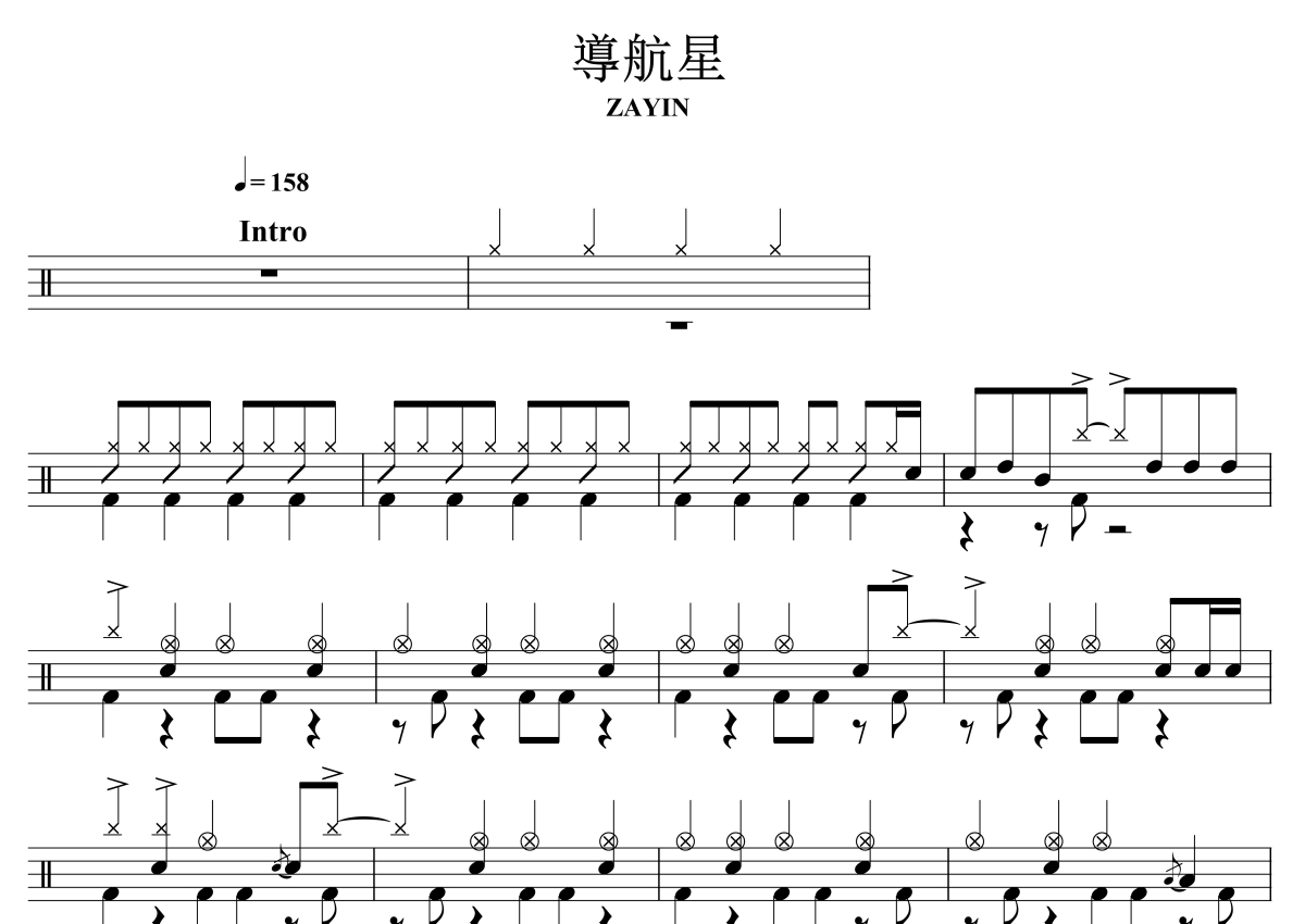 《导航星》是展翼演唱的一首歌曲,拍号为4/4拍,歌曲速度为每分钟158拍,这份架子鼓谱共有四张高清图谱,图谱由 @音符喷血者 编配上传,图谱使用五线谱编配,使用这份导航星架子鼓谱,你将能够轻松地敲打出这首展翼的导航星,快来尝试吧。
