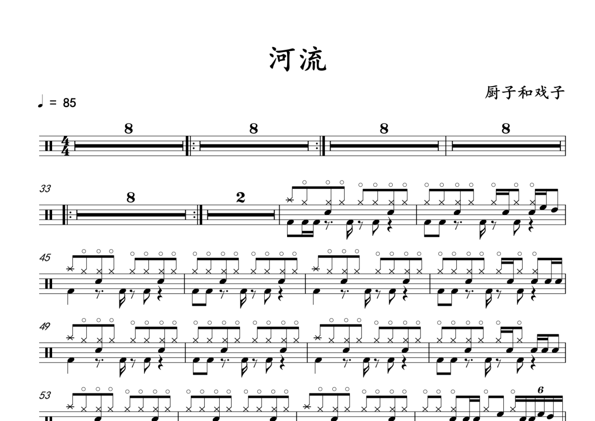厨子和戏子《河流》架子鼓谱