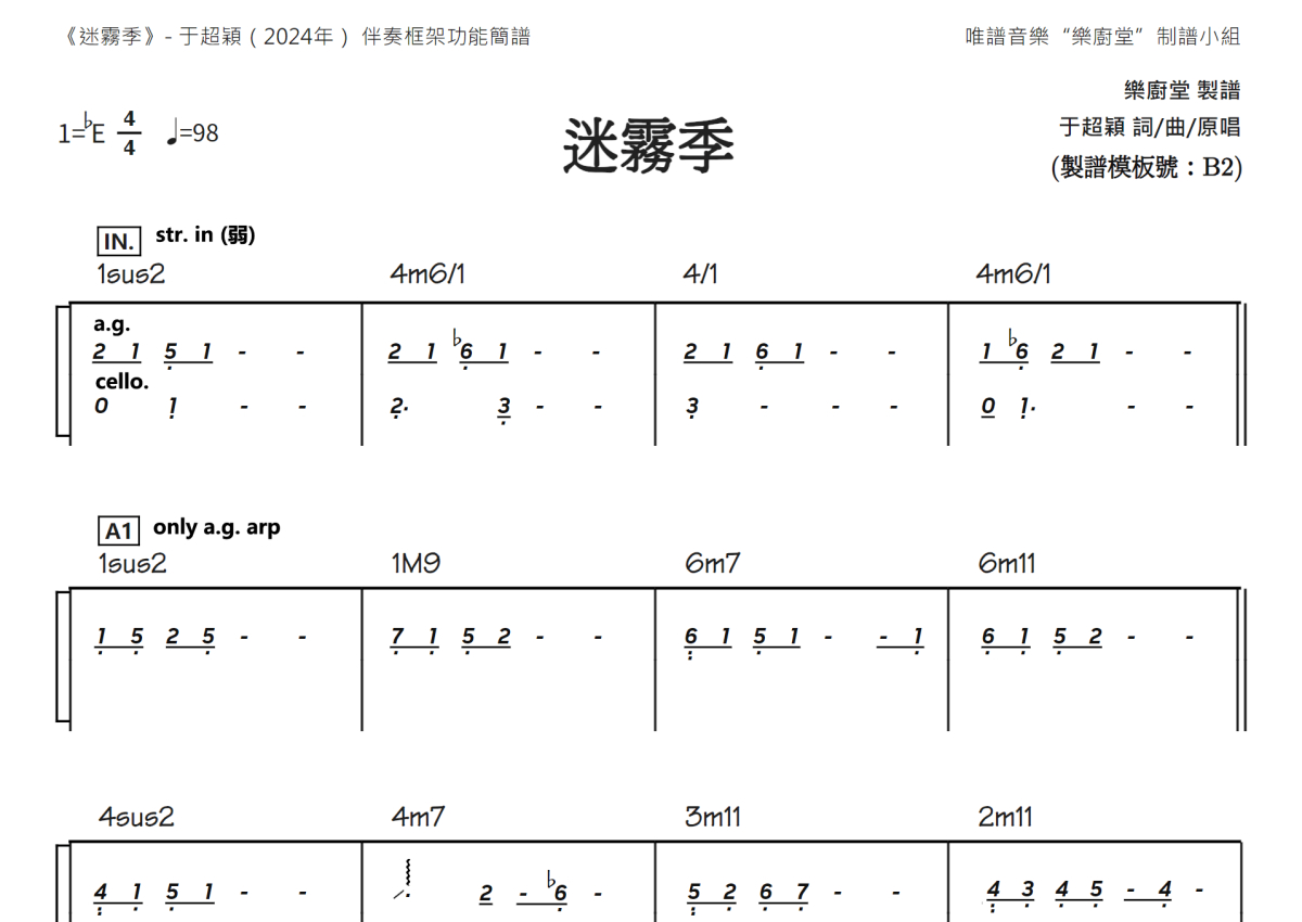 余超颖《迷雾季》乐队总谱 - 伴奏框架谱