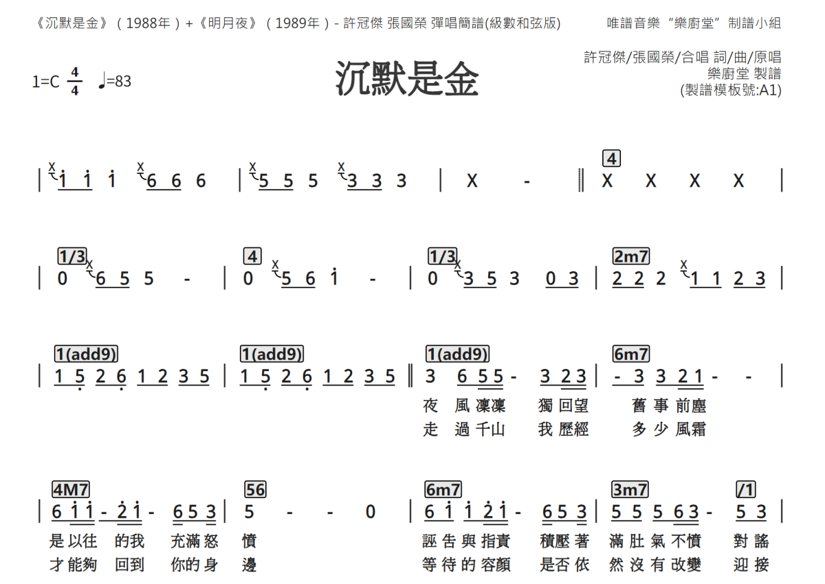 张国荣《沉默是金+明月心(双语版)》简谱 - 级数和弦谱