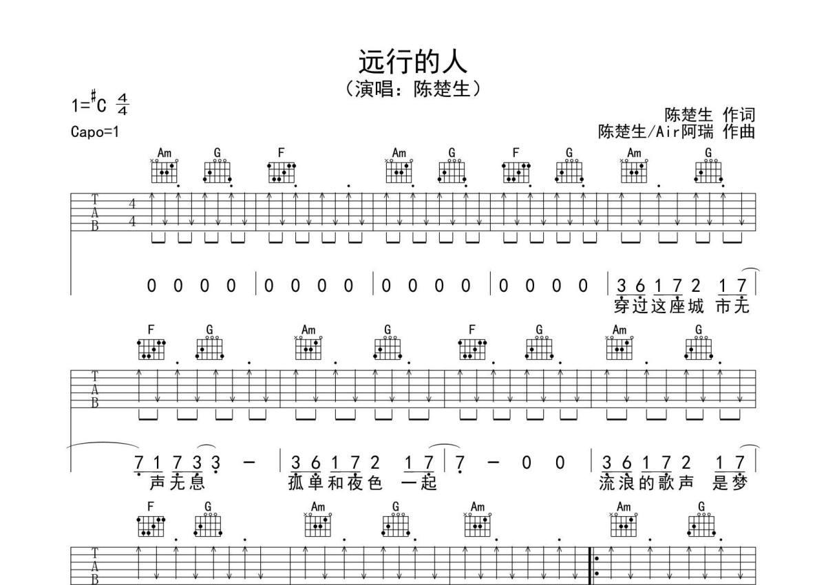 陈楚生《远行的人》吉他谱 - G调弹唱六线谱