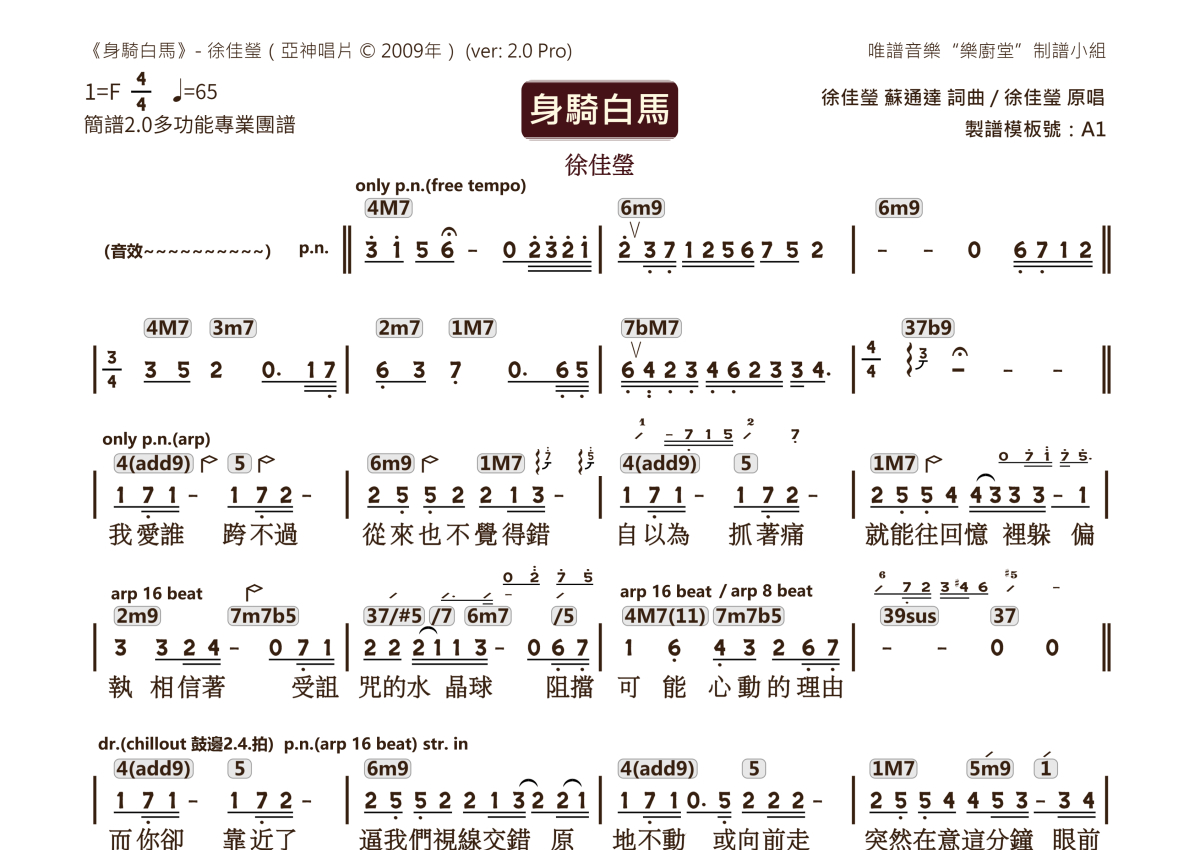徐佳莹《身骑白马》乐队总谱 - 2.0版多功能团谱
