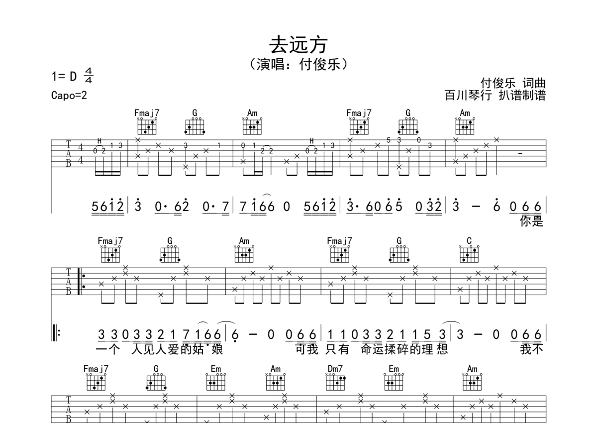 付俊乐付俊乐《去远方》吉他谱 - C调弹唱六线谱