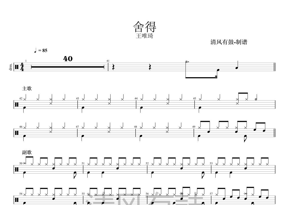 舍得架子鼓谱 - 王唯旖演唱
