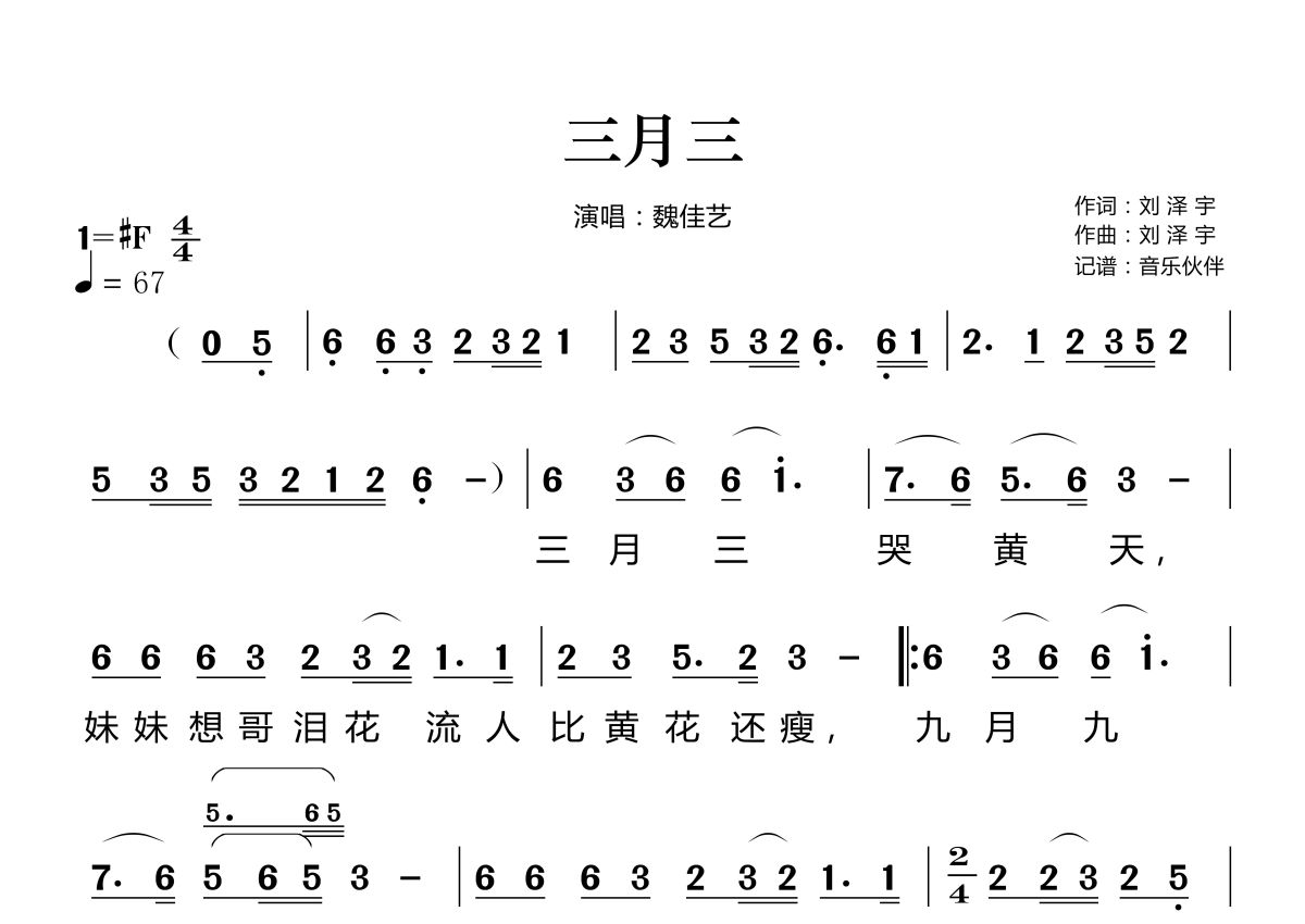 三月三简谱 - 魏佳艺演唱